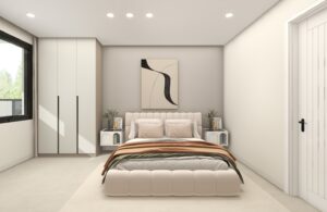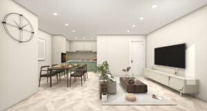 residential road, comprised of attractive terrace houses. Each apartment has its own private, charging parking space, and benefits from solar panels, air